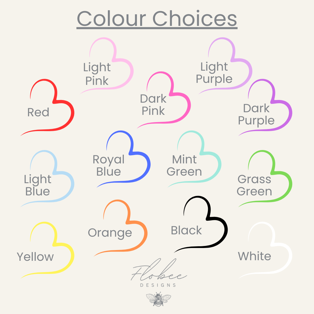 And make it uniquely yours, by adding your name or favourite wording, finished with a sweet heart in the colour of your choice. Want something a little different? Just let us know.