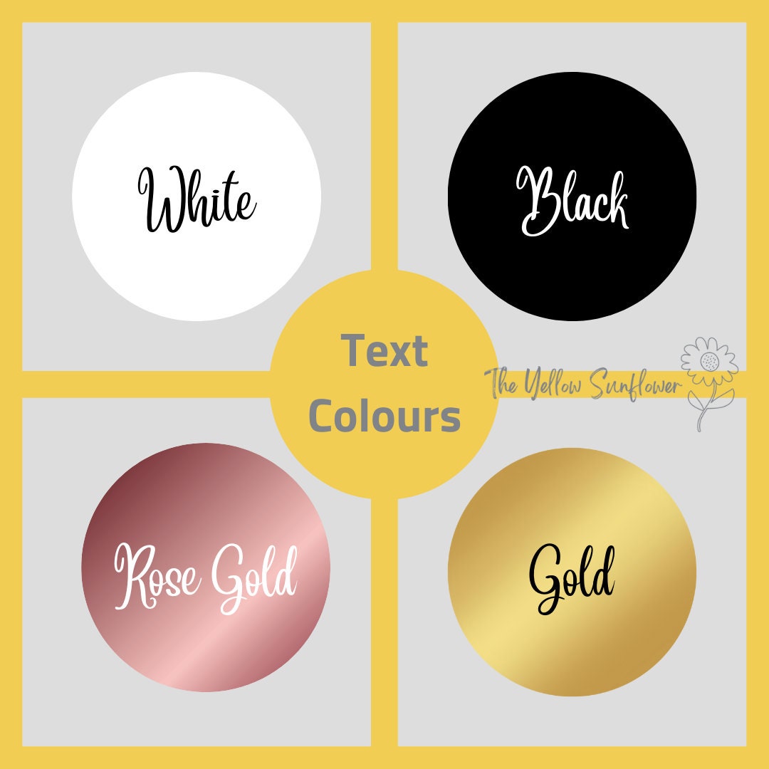 * Add details of your personalisation requirements and text colour choices i.e. Carr (Black text)