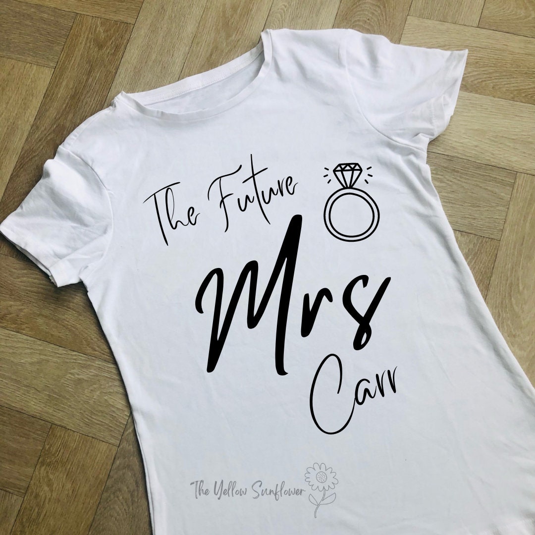 As standard this t-shirt will show the phrase 'The Future Mrs [SURNAME]'